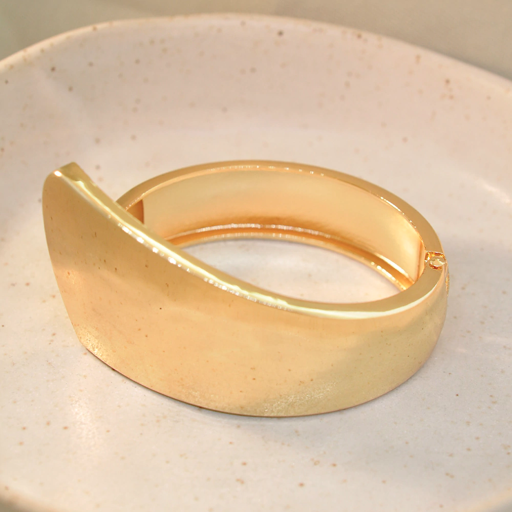 O bracelete Diana é uma bijuteria em metal dourado, com uma ponta, que promove estilo e elegância moderna e ousadia. Com um design único que destaca formas pontiagudas, esta peça foi criada para quem busca um acessório marcante e cheio de personalidade. Ideal para quem gosta de destacar sua personalidade através do design.