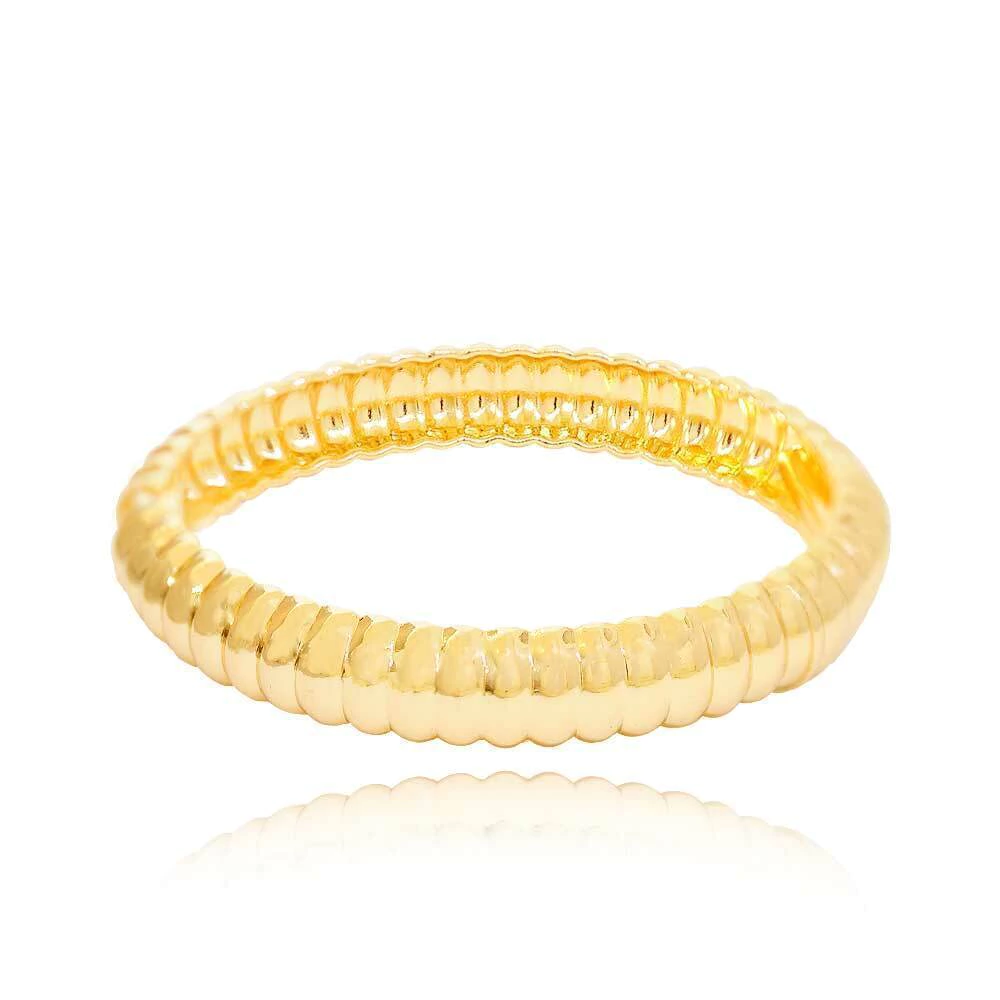 É uma semijoia com banho de ouro 18k, bracelete texturizado é uma peça de destaque que traz profundidade e personalidade ao visual. Use com jeans e uma camisa branca para um toque descontraído, mas sofisticado. É uma peça versátil que pode ser usada em diferentes ocasiões.