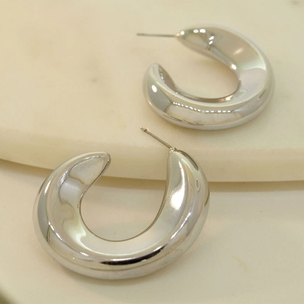 Inspirado em formas naturais e arredondadas, o brinco apresenta um formato de argola aberta com volume e curvas suaves. Seu acabamento liso e polido proporciona um visual moderno e sofisticado, perfeito para compor looks com personalidade.