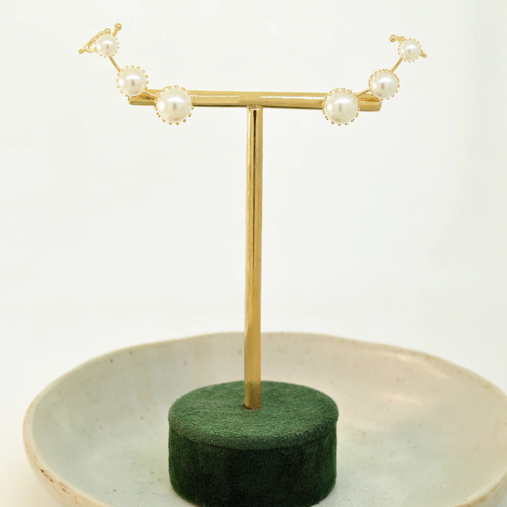 Mais do que uma simples bijuteria, este brinco ear cuff com pérolas em tamanhos variados e banho dourado é uma peça que celebra a delicadeza com um toque moderno. Perfeito para quem busca um acessório elegante e ao mesmo tempo cheio de personalidade.
