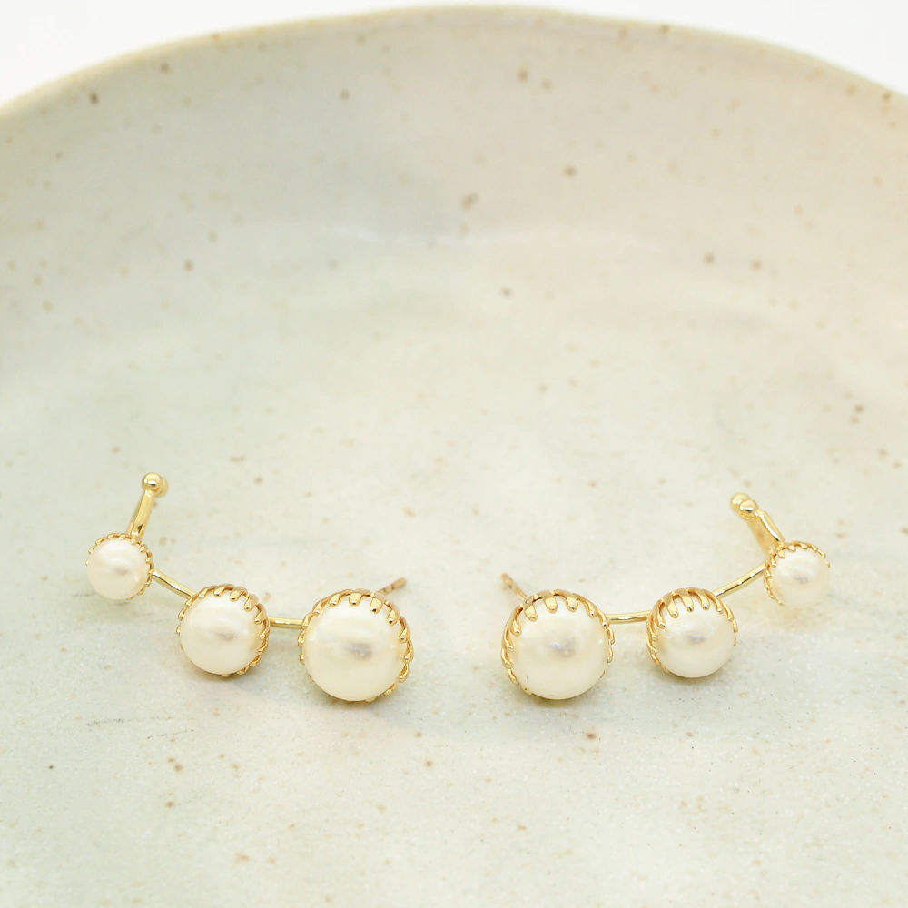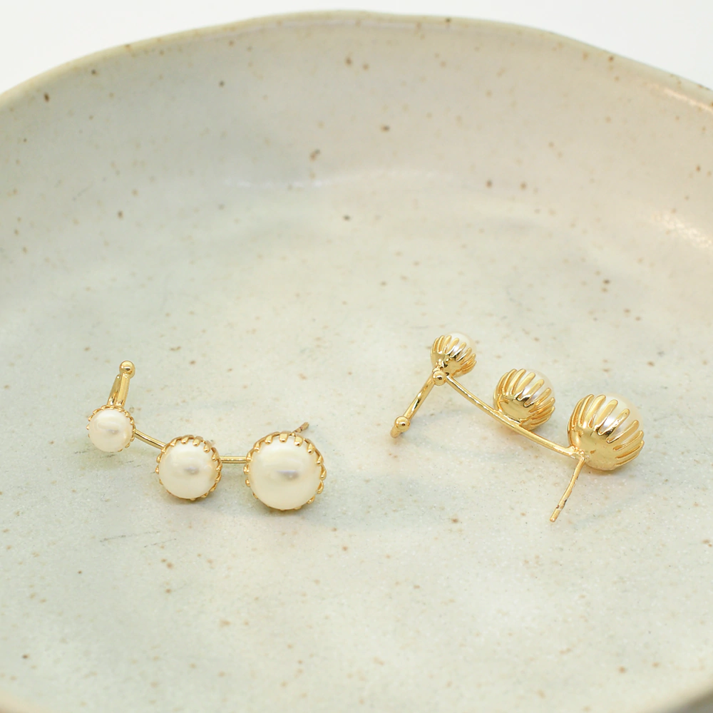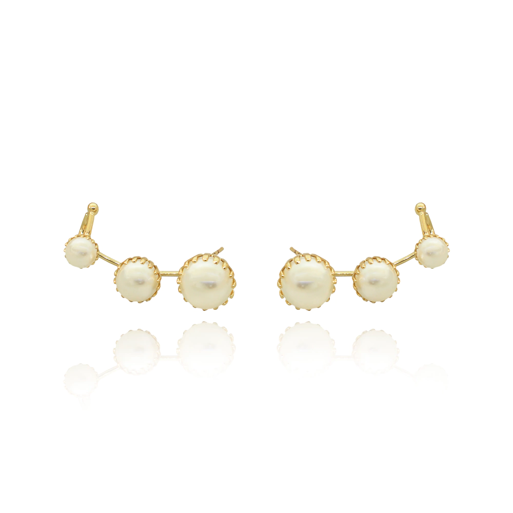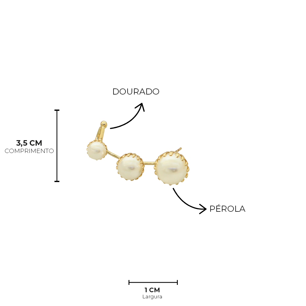 O design harmonioso das três pérolas, dispostas em ordem de tamanho crescente, valoriza o formato da orelha e adiciona charme ao visual. Ideal para compor looks tanto do dia a dia quanto produções especiais. Use-o sozinho para um efeito minimalista ou combine com outros brincos pequenos para criar um mix sofisticado.