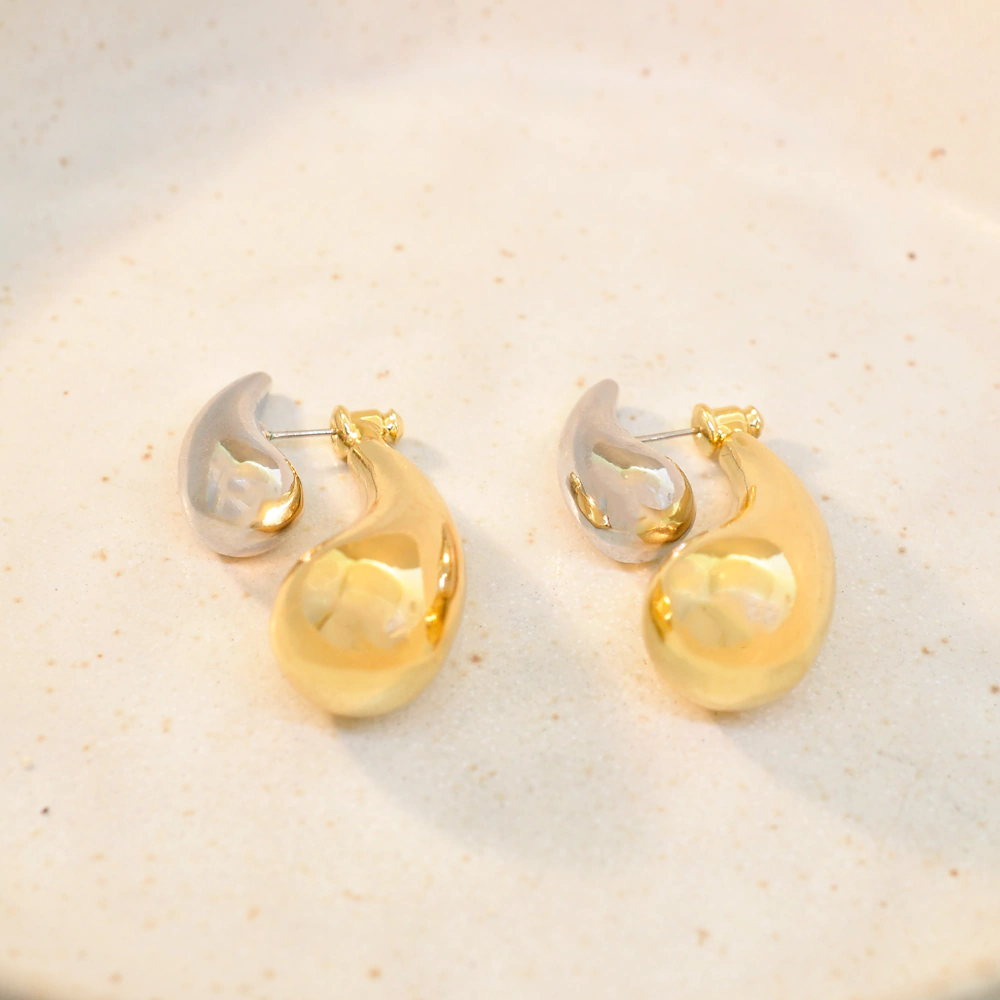 É uma bijuteria em metal prateado e dourado, brinco gota com tarracha gota é atemporal moderno e estiloso são versáteis e podem ser usados em várias ocasiões, desde eventos formais até uso diário. A tarracha em formato de gota proporciona um ajuste seguro e confortável, distribuindo o peso do brinco de maneira uniforme. O formato de gota é clássico e sofisticado.