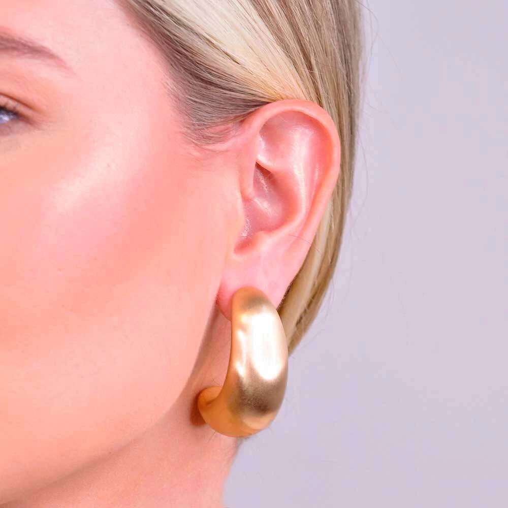 Ideal para compor looks sofisticados, o brinco de argola escovado combina com diferentes estilos, desde o casual até o mais refinado. Pode ser usado sozinho ou em conjunto com outros acessórios para um efeito moderno e estiloso.