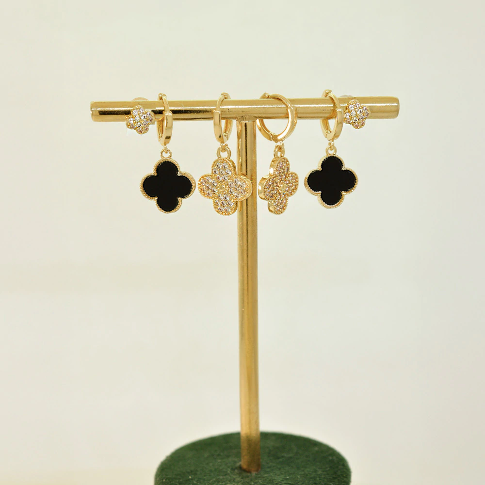 O Brinco Trio Trevo é uma bijuteria versátil e delicada, composta por três pares distintos: um par de mini trevo, um par de argolas com trevo esmaltado, e um par de argolas com trevo cravejado em strass. Ideal para quem gosta de variar no estilo sem abrir mão do charme.