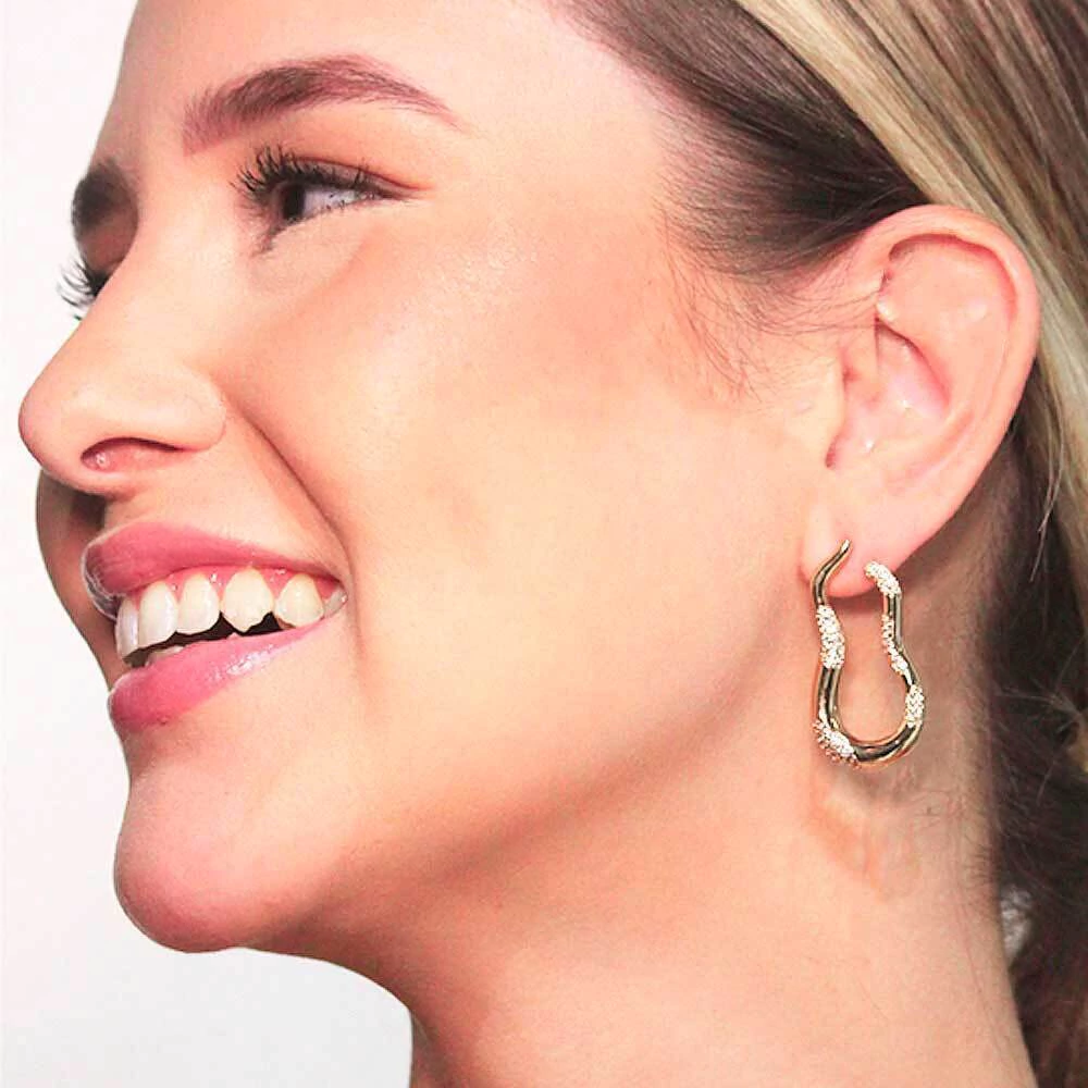 Brinco Semijoia Orgânico Pri Acessórios: Formas Naturais com Brilho Moderno