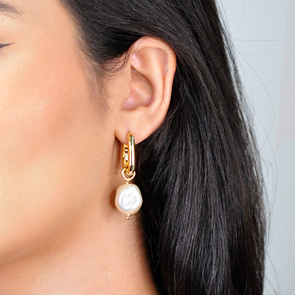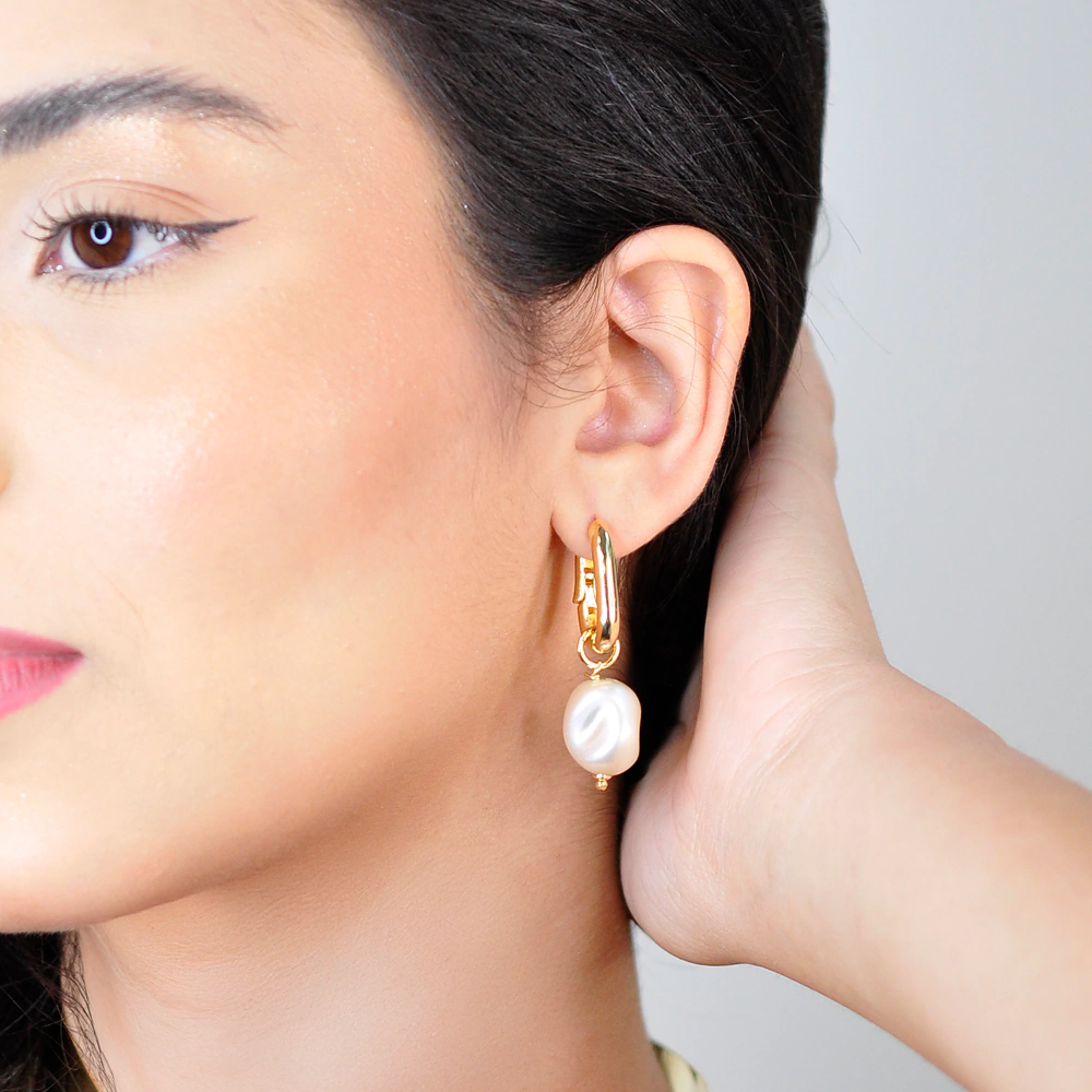 Brinco Aura Argola Pêndulo Pérola: Delicadeza com Toque Sofisticado