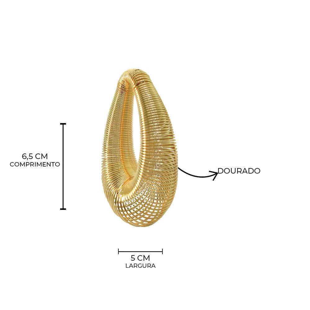 Seu formato amplo valoriza o rosto e acrescenta estilo imediato a qualquer produção, podendo transitar facilmente entre looks casuais, elegantes ou de festa. O acabamento brilhante em banho de ouro 18k e banho de ródio realça ainda mais o visual robusto e diferenciado da peça.
