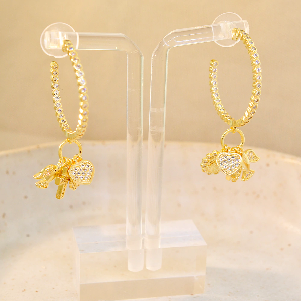 É uma semijoia em banho de ouro 18k, usar brincos de argola com pingentes religiosos pode ser uma forma elegante e simbólica de expressar sua fé e estilo ao mesmo tempo. Versáteis para o dia a dia, trazendo um equilíbrio entre o clássico e o moderno. Trazem um toque clássico e podem ser usadas sozinhas ou combinadas com outros acessórios.combine com um colar discreto. Se quiser ousar, aposte no mix de colares finos com diferentes comprimentos.