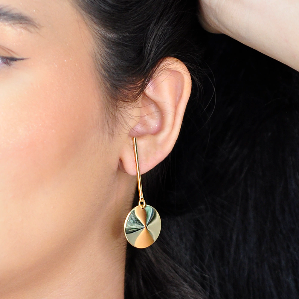 Brinco Aura Pêndulo Disco Dourado: Leveza com Design Marcante