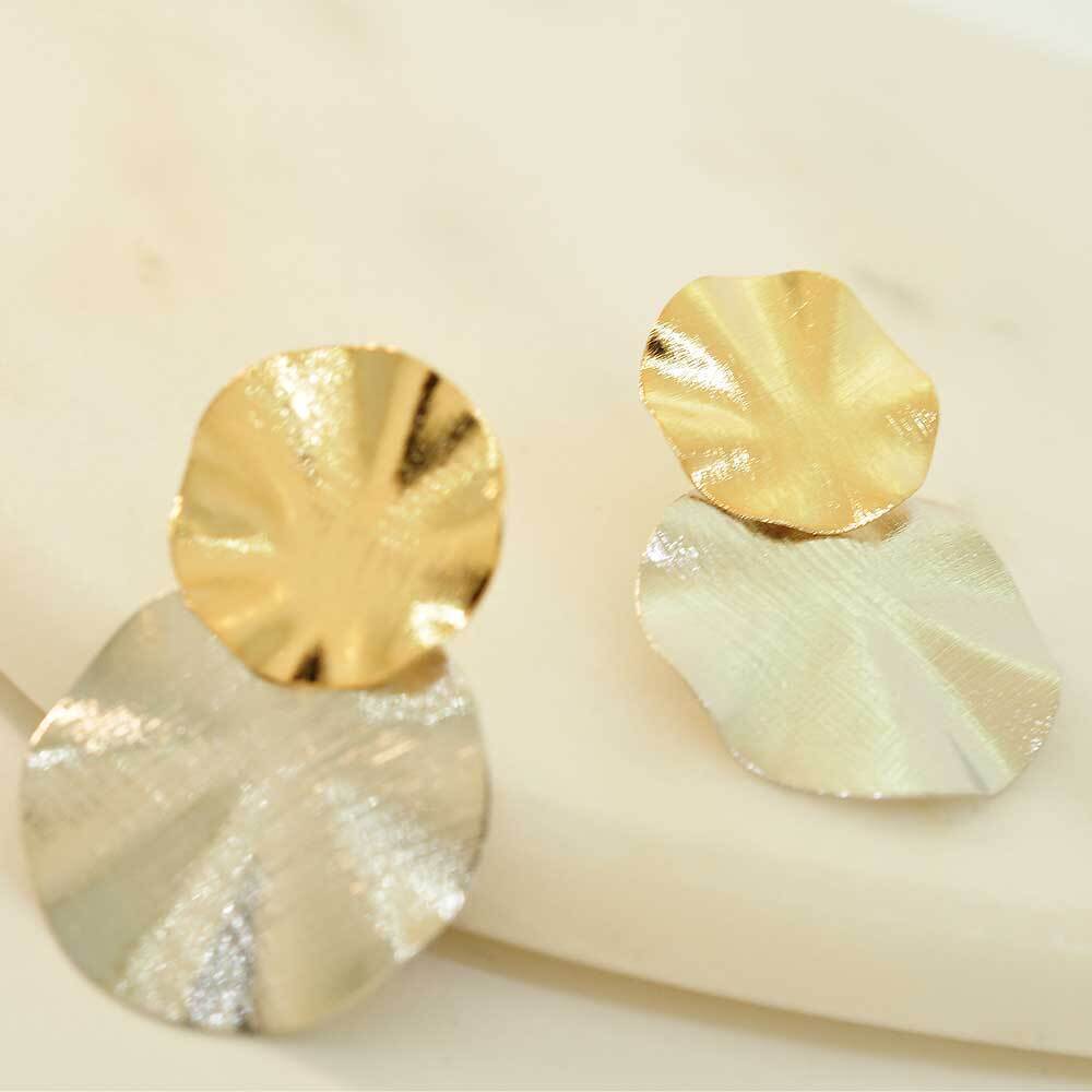 O Brinco Semijoia Chapa Duplo Orgânico Duo apresenta duas chapas sobrepostas em formas orgânicas, com acabamento escovado, que confere textura sofisticada e moderna à peça. O contraste entre o dourado e o ródio valoriza ainda mais o design. Além disso, este modelo possui duas formas de uso, permitindo que você escolha entre usar apenas a chapa menor para um visual discreto, ou a composição dupla para um look mais marcante.