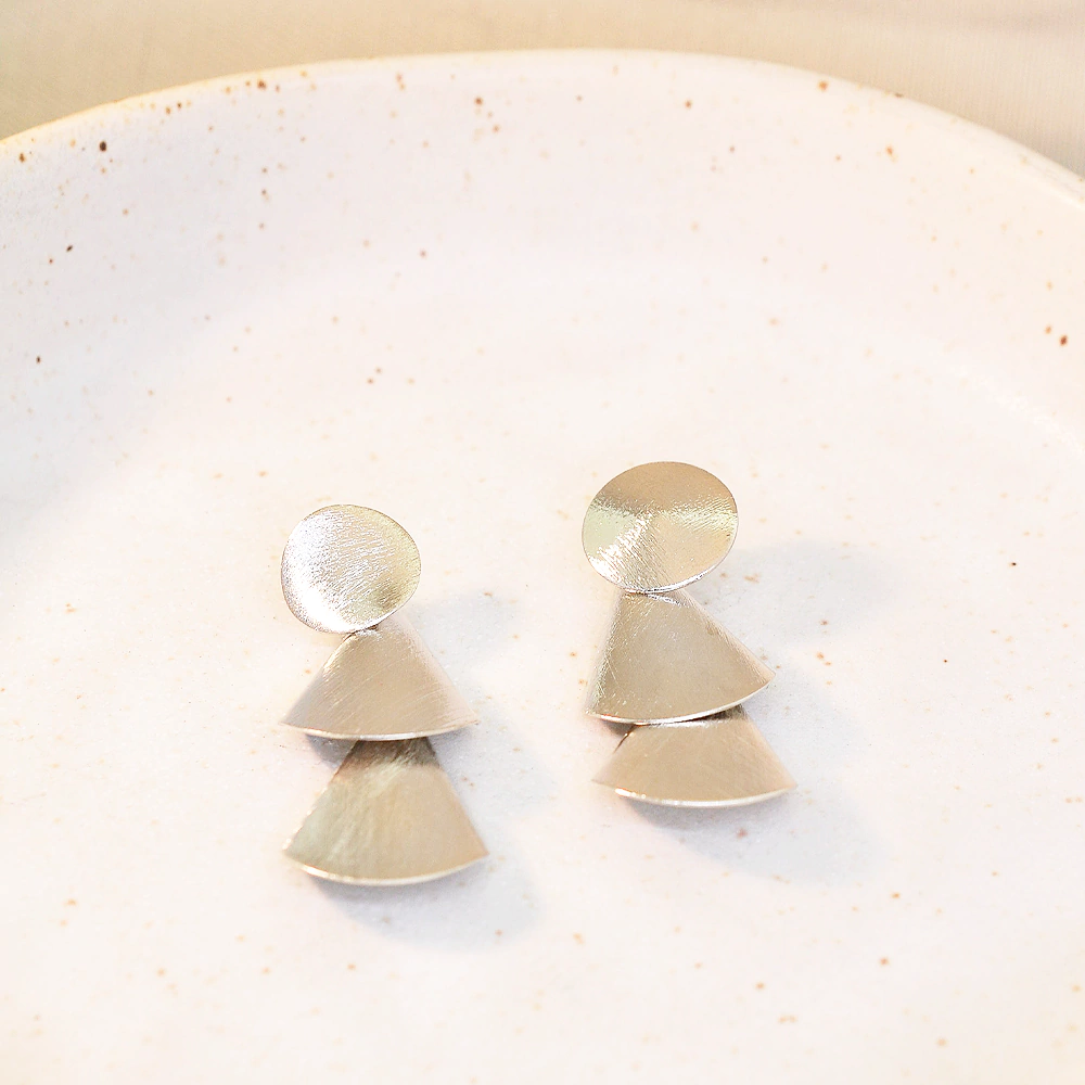 É uma semijoia em banho de ródio. Este brinco sofisticado combina modernidade e elegância em um design geométrico exclusivo. Composto por três esferas texturizadas foscas, o modelo destaca-se pelo acabamento impecável em banho de ródio, que garante brilho duradouro e resistência. Uma peça perfeita para quem deseja elevar qualquer look com estilo e sofisticação.