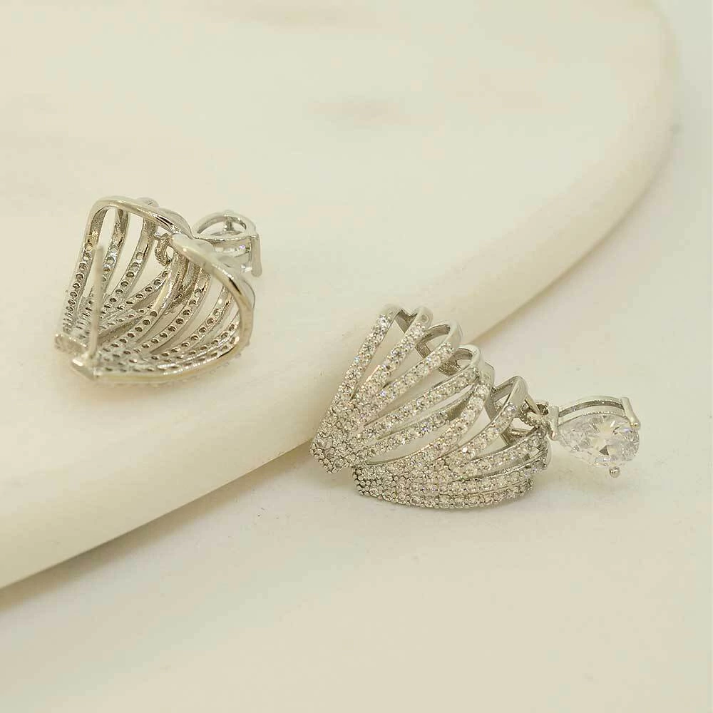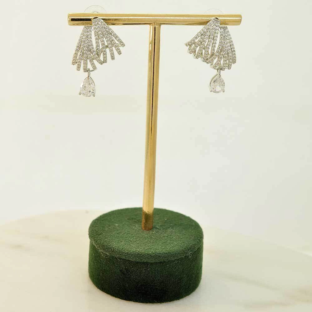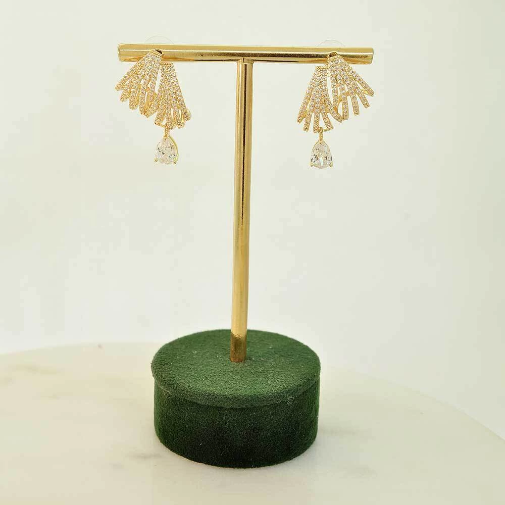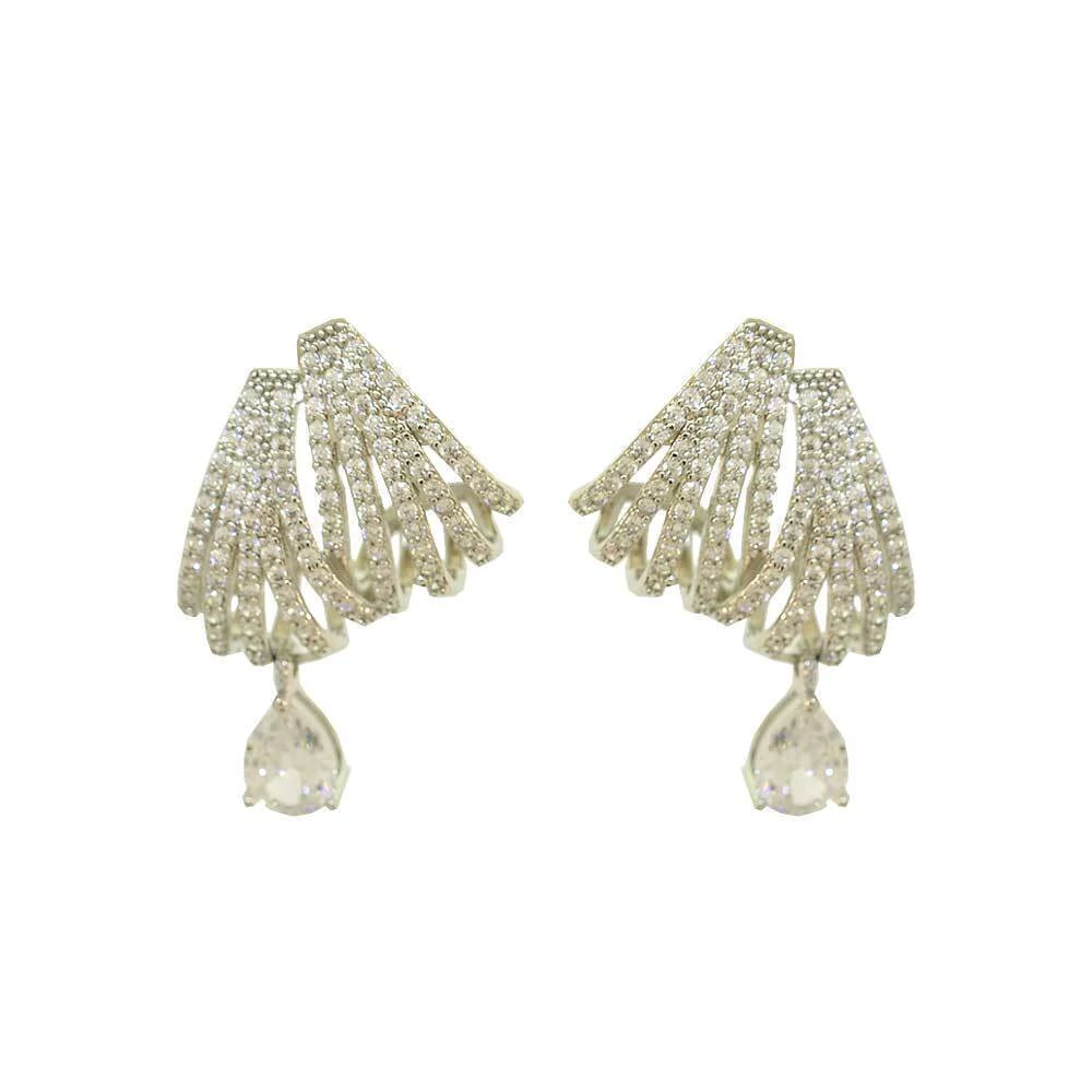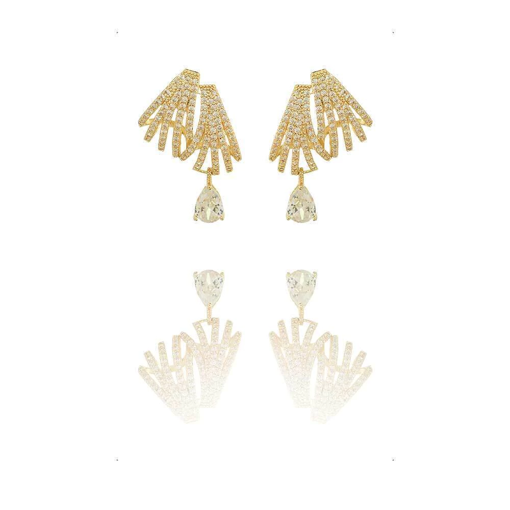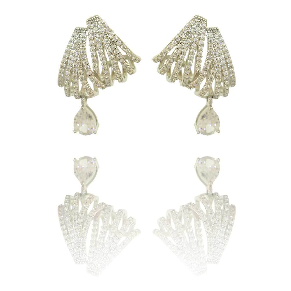 Esta peça é uma semijoia de alto impacto visual, que combina a sofisticação do design cravejado com uma sutil gota para dar mais brilho ao seu look. O brinco possui fecho tradicional de tarraxa e é uma escolha marcante e luxuosa, ideal para quem deseja um acessório que destaque o rosto com muito brilho e elegância.