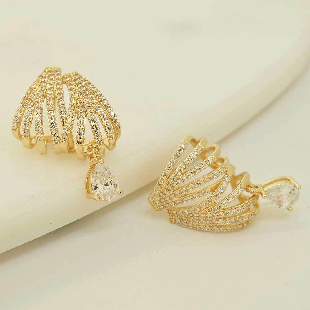Design: Com um design arrojado de "Dez Vias Cravejadas", a peça cria um efeito deslumbrante, como se fossem fileiras de brilho e possui uma gota para dar ainda mais brilho e destaque. A intensa cravação de microzircônias maximiza o reflexo da luz, conferindo um brilho excepcional. Está disponível nas versões com banho de ouro 18k (Dourado) e banho de ródio (Prateado), oferecendo versatilidade e um acabamento premium.