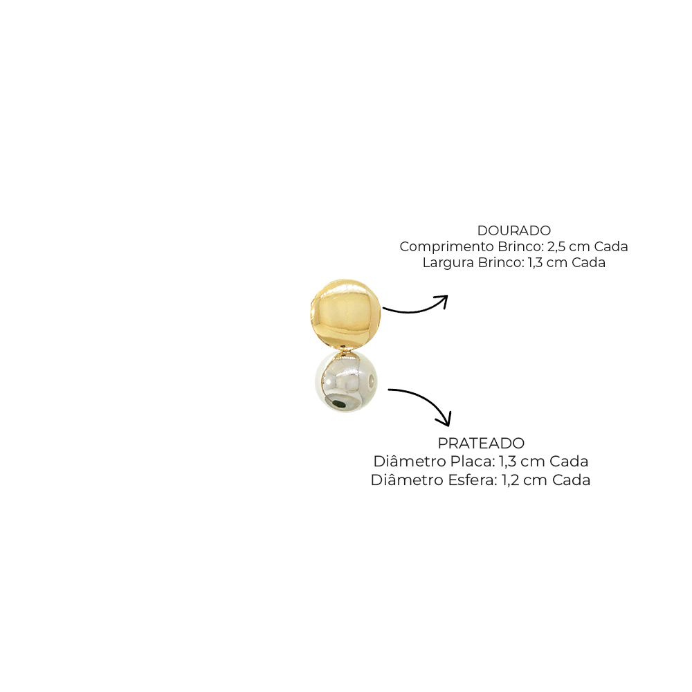 Com uma placa arredondada e uma mini esfera em pêndulo, esse brinco apresenta um movimento sutil e moderno. A combinação dos banhos de ouro 18k e ródio cria um efeito visual único, perfeito para quem busca sofisticação sem excessos.