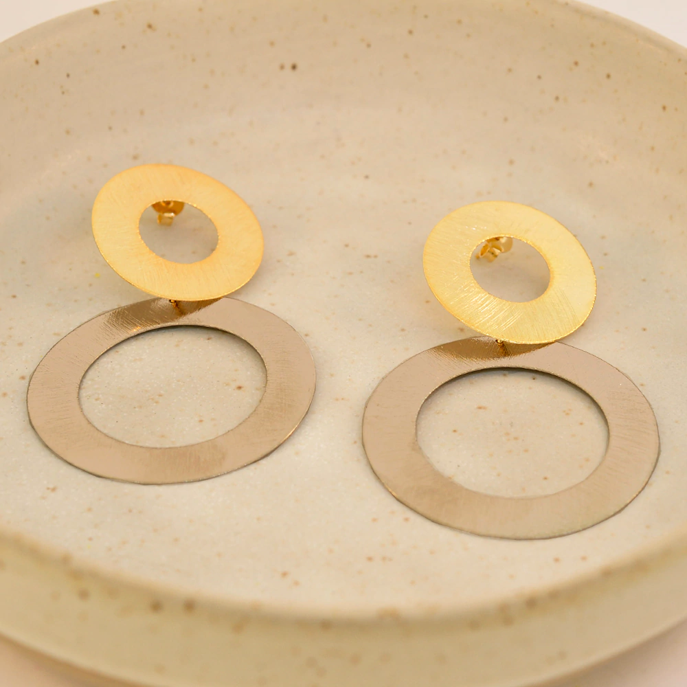É uma semijoia com banho de rodio e banho de ouro 18k,brinco geometrico é versátil. Seu comprimento alongado e formas geométricas proporcionam uma estética moderna e elegante, perfeita para quem busca um estilo único e refinado.Este brinco é leve e confortável de usar durante todo o dia. Seja para um evento especial ou para complementar seu look do dia a dia.