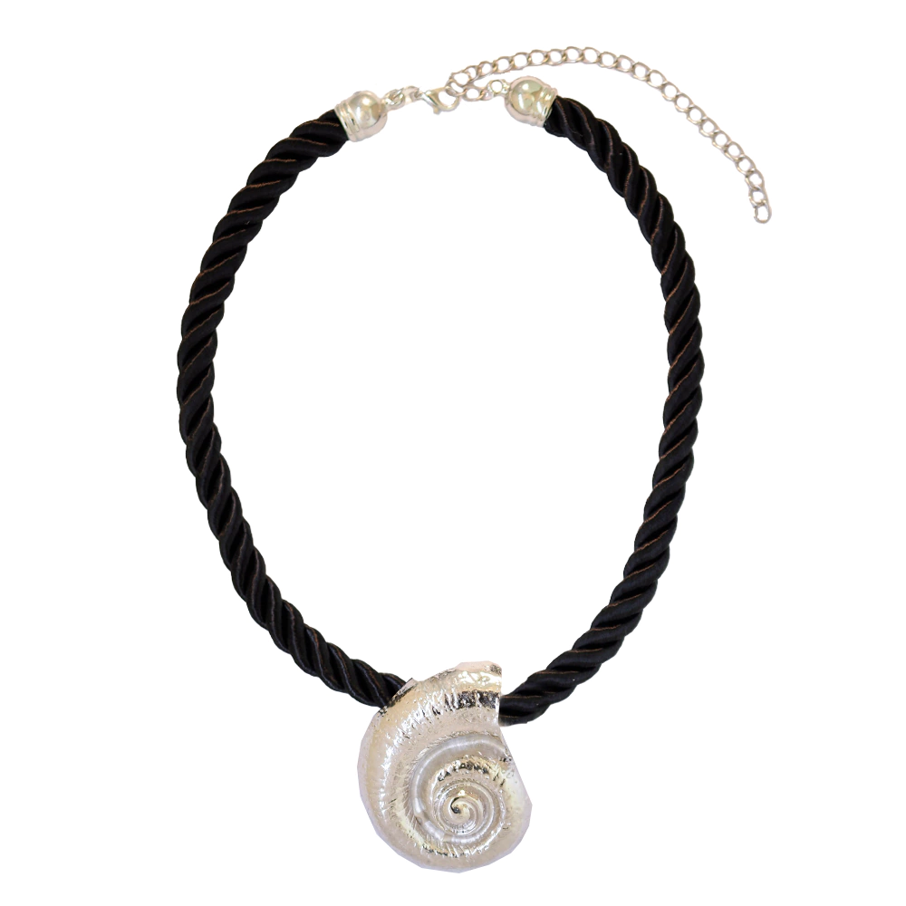 É uma bijuteria em metal prateado, choker de corda preta com uma concha grande pode dar um toque boho e praiano ao teu look. Para um look descontraído e de verão, combina o choker com roupas leves, como vestidos de linho, tops soltos ou macacões. Os tons naturais como branco, bege ou cores pastel combinam bem com a estética praiana. Fica ótimo com biquínis ou fatos de banho se quiseres usar na praia.