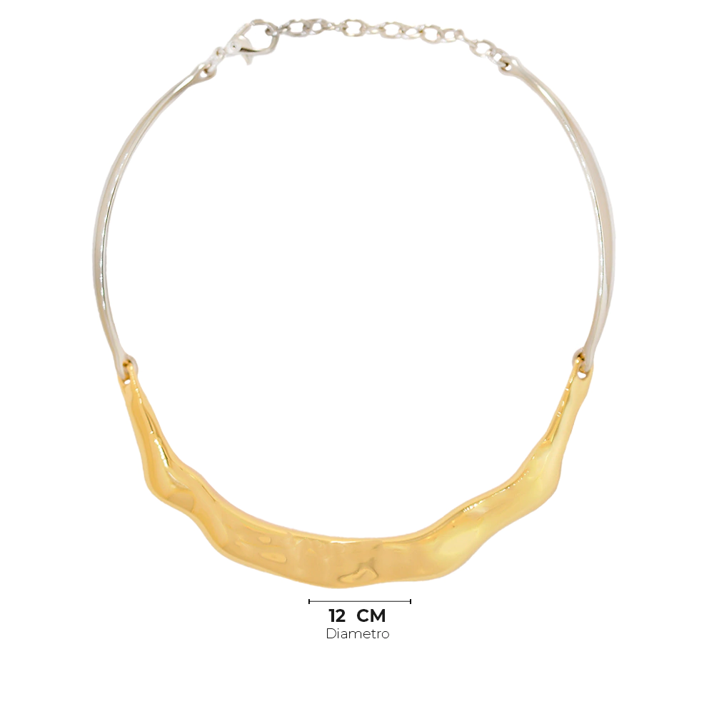 É uma bijuteria em metal dourado e prateado, choker orgânico duo é uma peça moderna e sofisticada que combina com design minimalista. Este choker tem banho com verniz italiano é um banho que tem a função de dar nivelamento e brilho na superfície da peça, selando-a e garantindo o brilho extra, além de uma maior durabilidade.