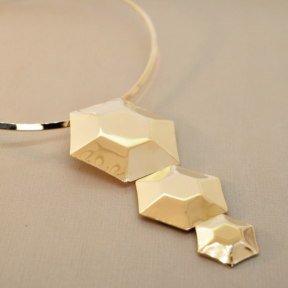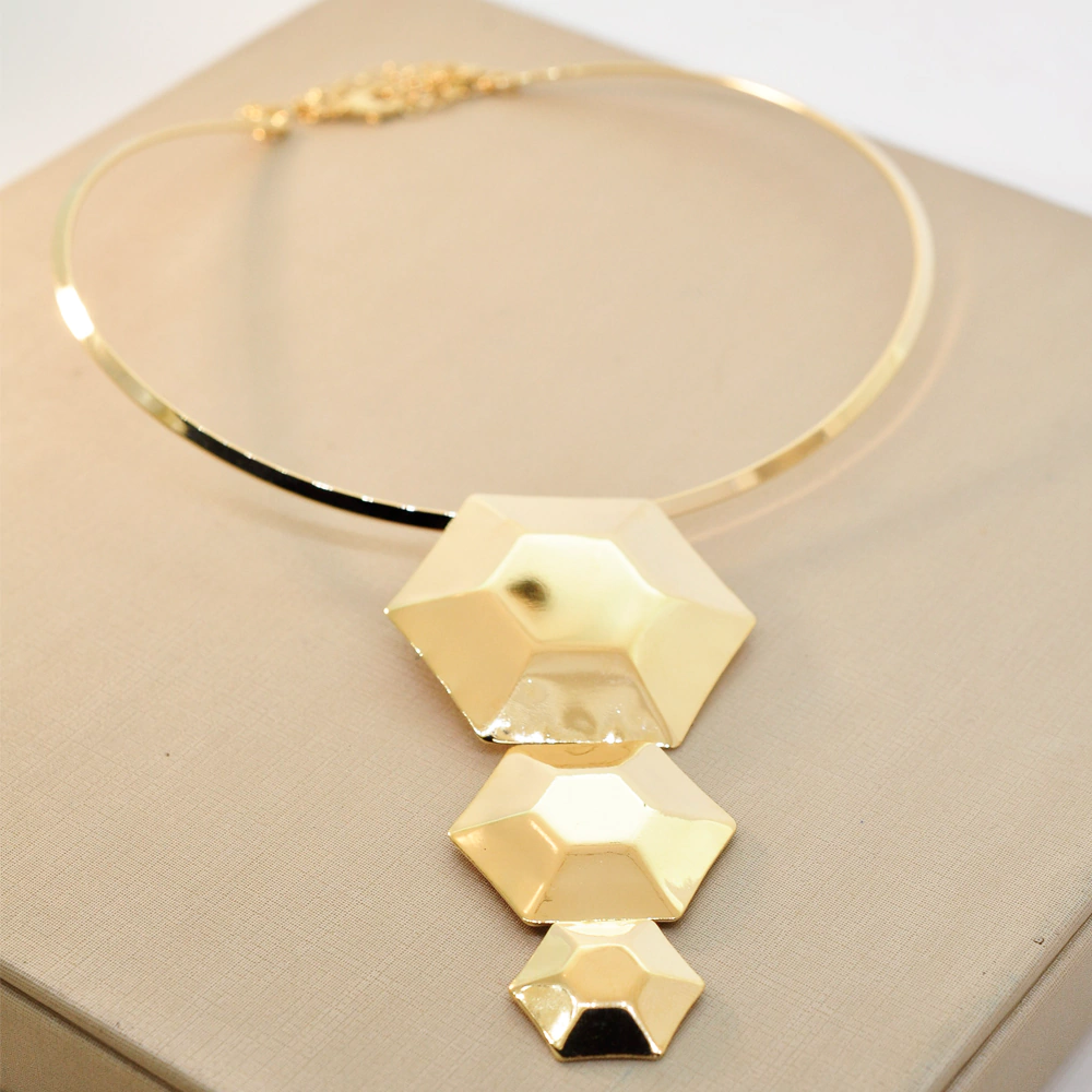 Choker Semijoia Aura Aro Três Pingentes Geométricos – Modernidade e Sofisticação