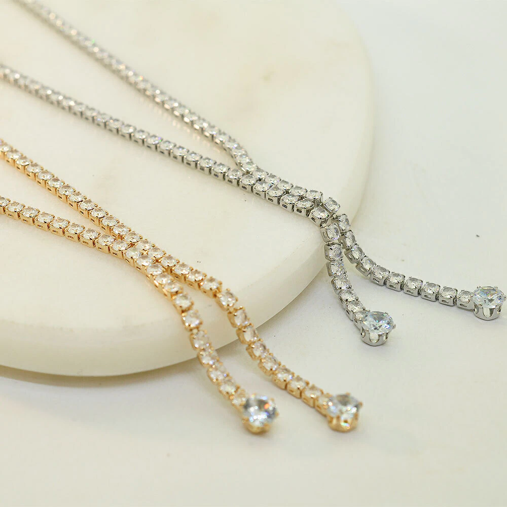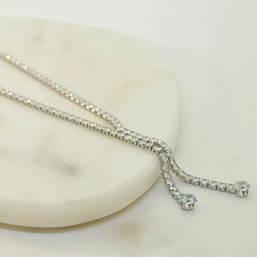 O Colar Bijuteria Gravata Pontos de Luz é uma peça delicada e feminina, ideal para quem busca um acessório com brilho sutil e toque sofisticado. Seu design tipo gravata valoriza o colo e confere elegância atemporal, com pequenos pontos de luz que refletem suavemente, trazendo luminosidade ao visual.
