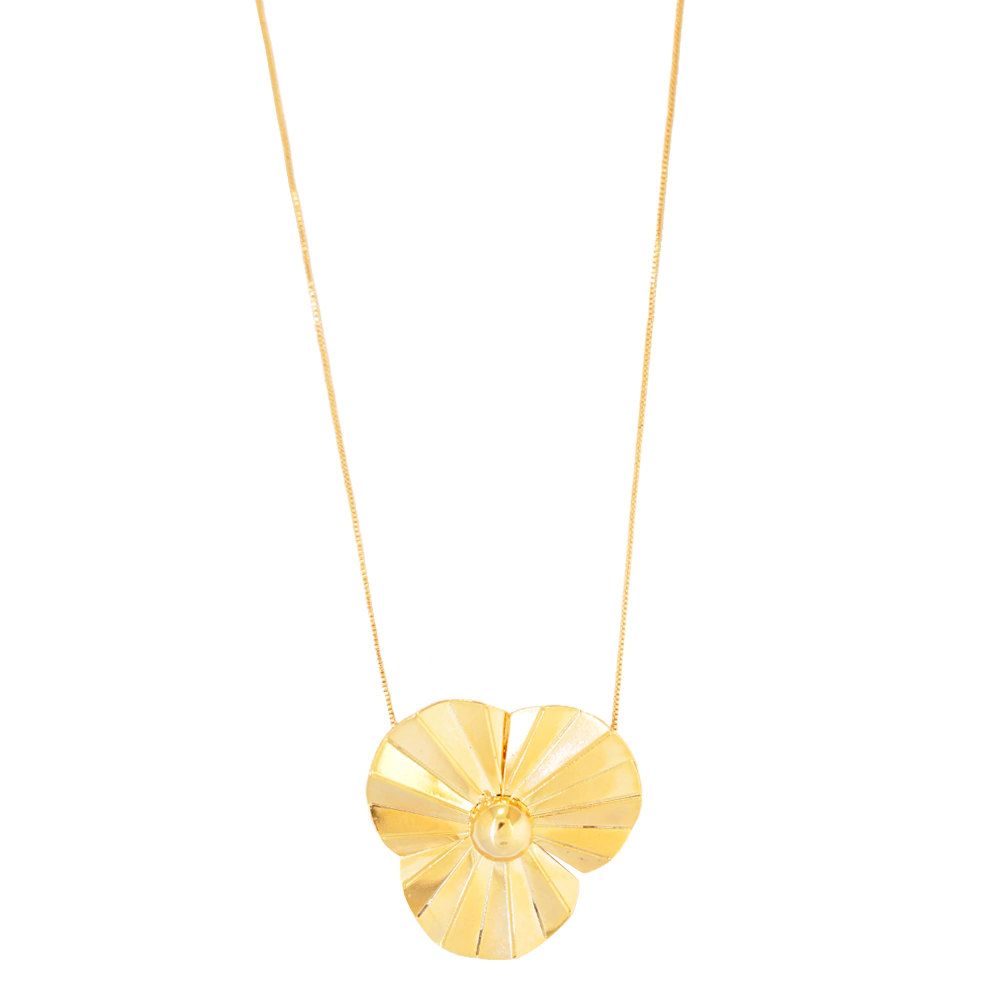 É uma semijoia com banho de ouro 18k, o colar flor leque é um acessório ousado e estiloso que combina elementos florais com um formato amplo e impactante, como um leque. Ele é perfeito para destacar o rosto e adicionar personalidade ao look. Deixe o colar ser o foco do visual, combinando-o com roupas de cores sólidas e cortes simples, como vestidos retos ou macacões monocromáticos. Coques, rabos de cavalo ou tranças destacam o brinco flor leque, deixando o rosto em evidência. O brinco flor leque já é marcante; prefira anéis ou pulseiras delicados.
