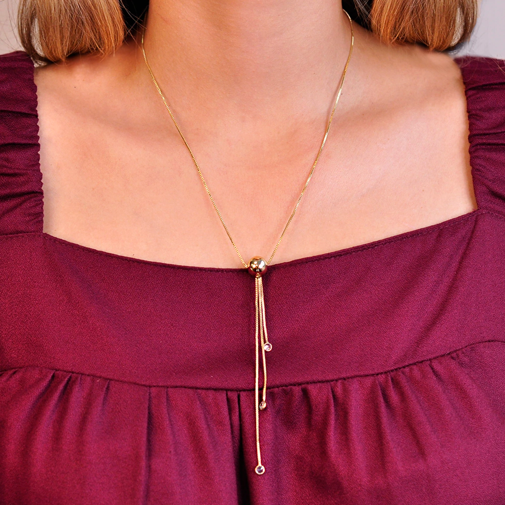 É uma semijoia em banho de ouro 18k, use o colar com uma blusa de decote simples, como uma blusa de gola alta ou uma blusa de alças finas. Isso permitirá que o colar seja o destaque do seu look. Combine o colar com uma roupa básica, como uma camiseta branca ou uma blusa simples de cor neutra. Isso ajudará a destacar o colar e adicionará um toque de sofisticação ao seu visual.