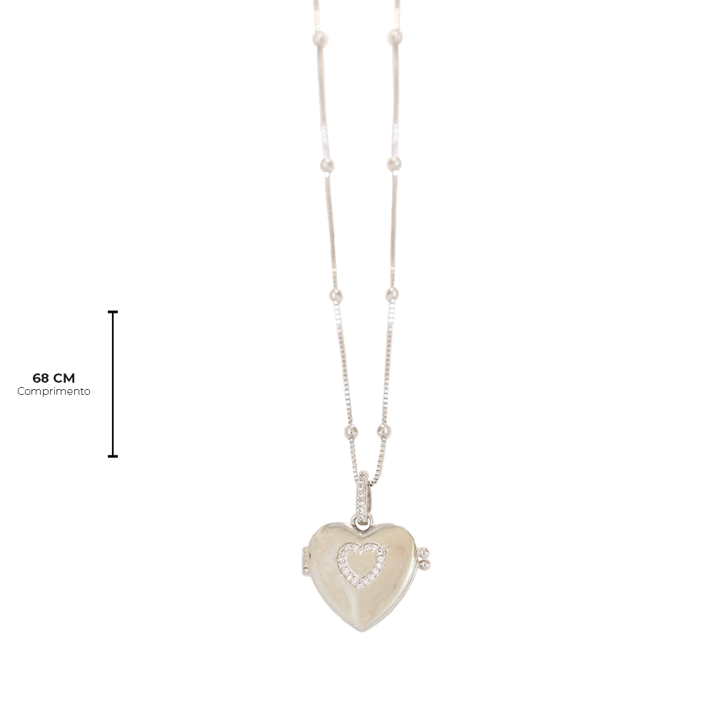 É uma semijoia com banho de ródio, colar relicário é mais do que uma joia; é um símbolo de amor, lembrança e conexão. Este relicário permite que você carregue consigo pequenas recordações, como fotos ou mensagens especiais. Seu design delicado e atemporal combina com qualquer estilo, tornando-se um acessório perfeito para o dia a dia ou ocasiões especiais.