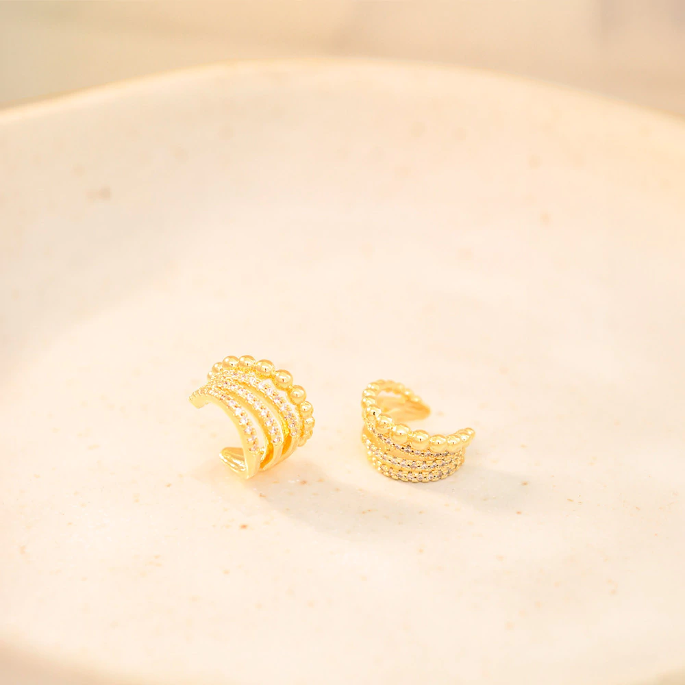O piercing duplo é uma semijoia com banho de ouro 18k, perfeito para quem deseja um acessório moderno e versátil. Pode ser usado tanto de dia quanto à noite, adicionando um toque de estilo ousado ao visual.